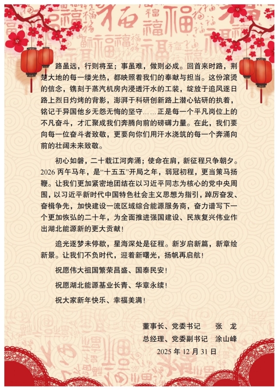 湖北能源集團股份有限公司2026年新年賀詞
