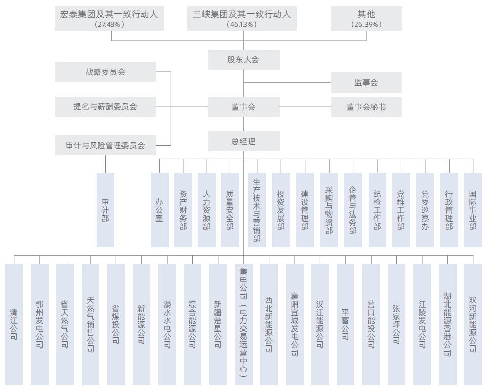 湖北省能源安全保障平臺和集團公司綜合能源發(fā)展平臺,公司已形成水電、火電、核電、新能源、天然氣、煤炭和金融“6+1”的業(yè)務(wù)板塊,初步建成了鄂西水電和鄂東火電兩大電力能源基地,并積極構(gòu)建煤炭和天然氣供應(yīng)保障網(wǎng)絡(luò),是我國能源業(yè)務(wù)品種最全的上市公司。